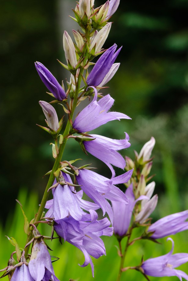 Ruig klokje, Campanula trachelium. Een vrij grote vaste plant die in bosranden en lichte bossen groeit, maar ook in hooilanden en op kapvlaktes. Vrij algemeen in Zuid Limburg, elders in ons land zeldzaam. Vaste plant die tot 100cm hoog kan worden. Bloeit in de zomer.