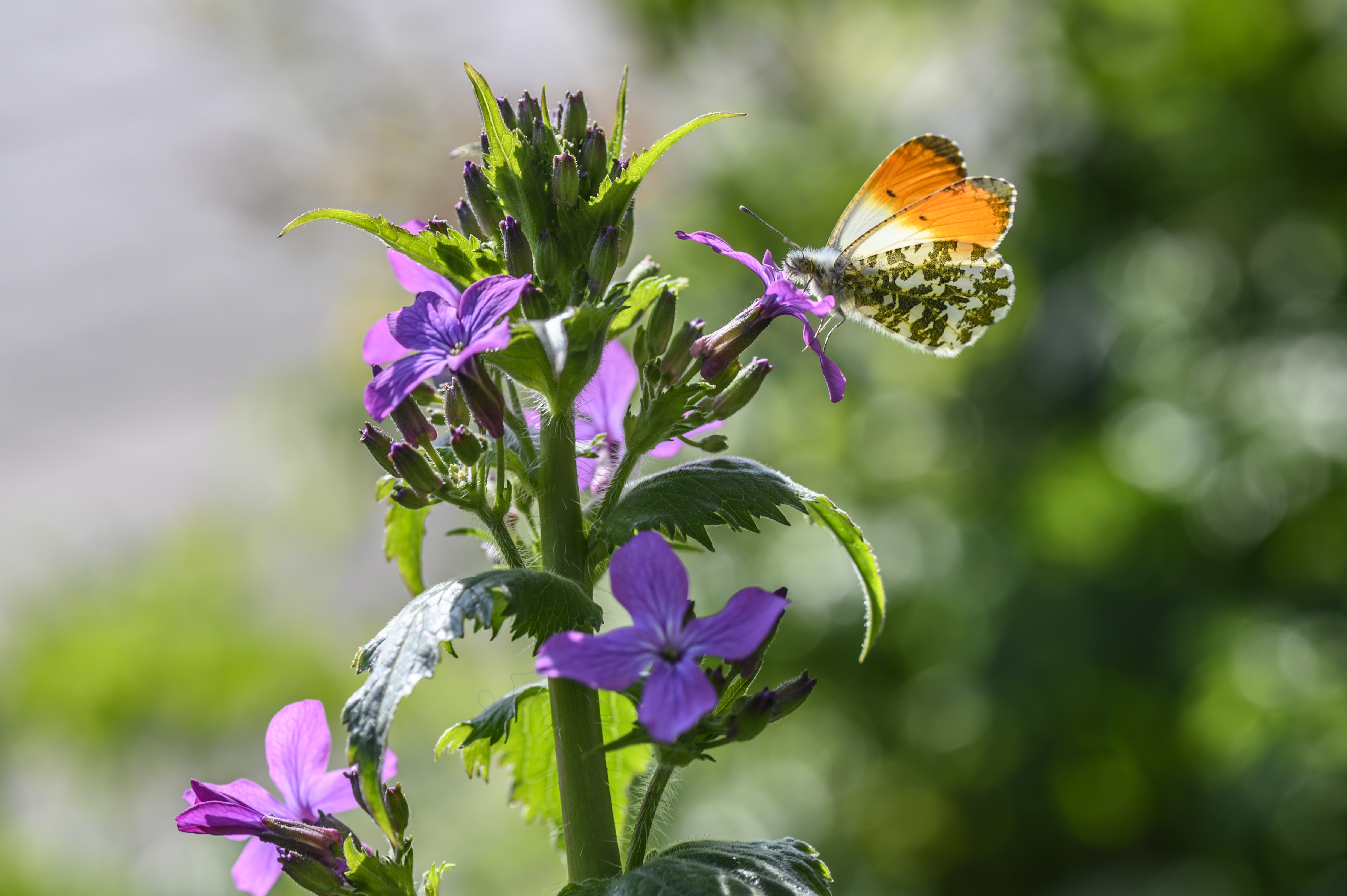 Het leuke van beide soorten is dat er veel vlinders op afkomen. Witjes zijn er gek op. Ook om hun eieren op af te zetten. Dubbelop dus. Hier zie je een oranjetipje op de tuinjudaspenning zitten. Bloeit in maart en mei en dat is ook precies de vliegtijd van het oranjetipje. De vlinder was lange tijd heel zeldzaam bij ons in de Gooi- en Vechtstreek maar is alweer een paar jaar zich goed aan het uitbreiden. Leuk dus dat ie vandaag onze eerste bloemen van de judaspenning kwam bezoeken in Kortenhoef (9 april 2019)