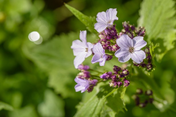 Tuinjudaspenning, Lunaria annua is al een heel oude tuinplant. De paarse bloemen stonden en staan in veel tuinen en het zilverachtigee zaaddoosje is lang gebruikt in droogboeketten. De plant is tweejarig. Het zaait zich direct uit en kiemt en meestal bloeit ie het eerste jaar niet, soms wel, maar het tweede jaar bloeit ie in ieder geval. Hij is overal in Europa ontsnapt aan tuinen en groeit dus verwilderd in lichte bossen, bosranden en langs wegen. Hij wordt ca 80 cm hoog en bloeit paars, roze of wit.