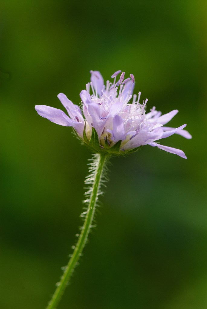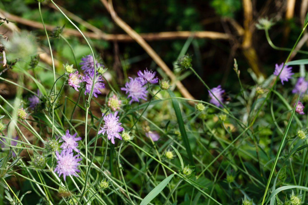 Duifkruid, Scabiosa columbaria is wat lastiger in de tuin want het houd van niet te droge tot droge, kalkrijke grond. Hij komt vooral voor in het rivierengebied en op kalkgraslanden in Limburg. En op begraafplaatsen. Om duifkruid in de tuin te houden is het wel handig om kalk toe te voegen en ook een warme plek te zoeken. Er komen veel bijen, zweefvliegen en vlinders op af. Hij wordt zo’n 50 cm hoog en bloeit lila. de bloeistengel is niet harig en vaak zijn de zwarte kelktanden goed te zien.