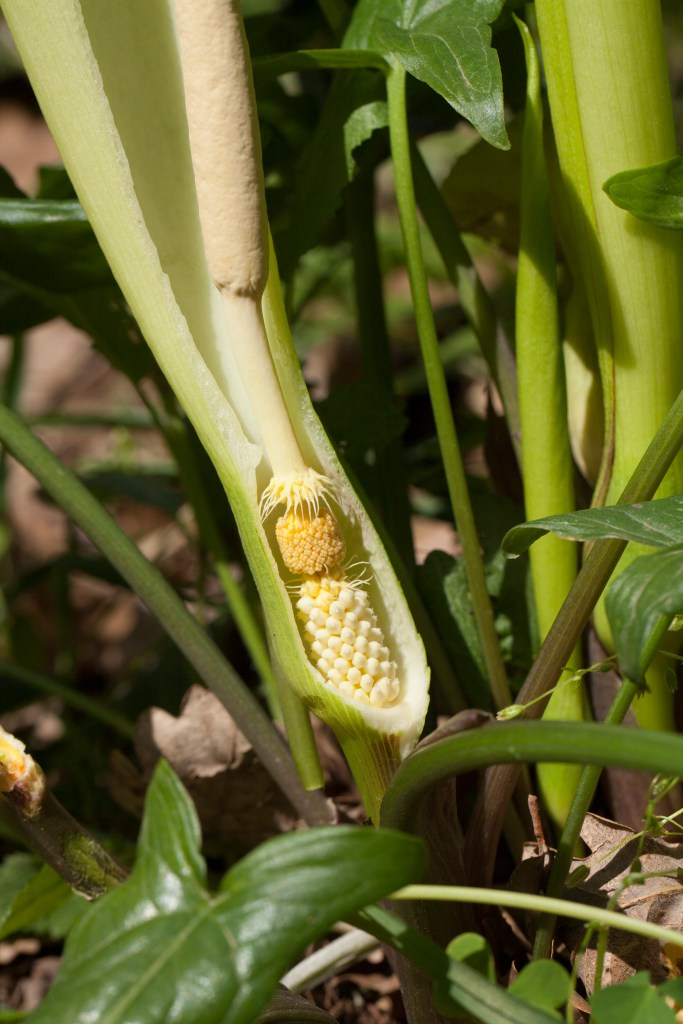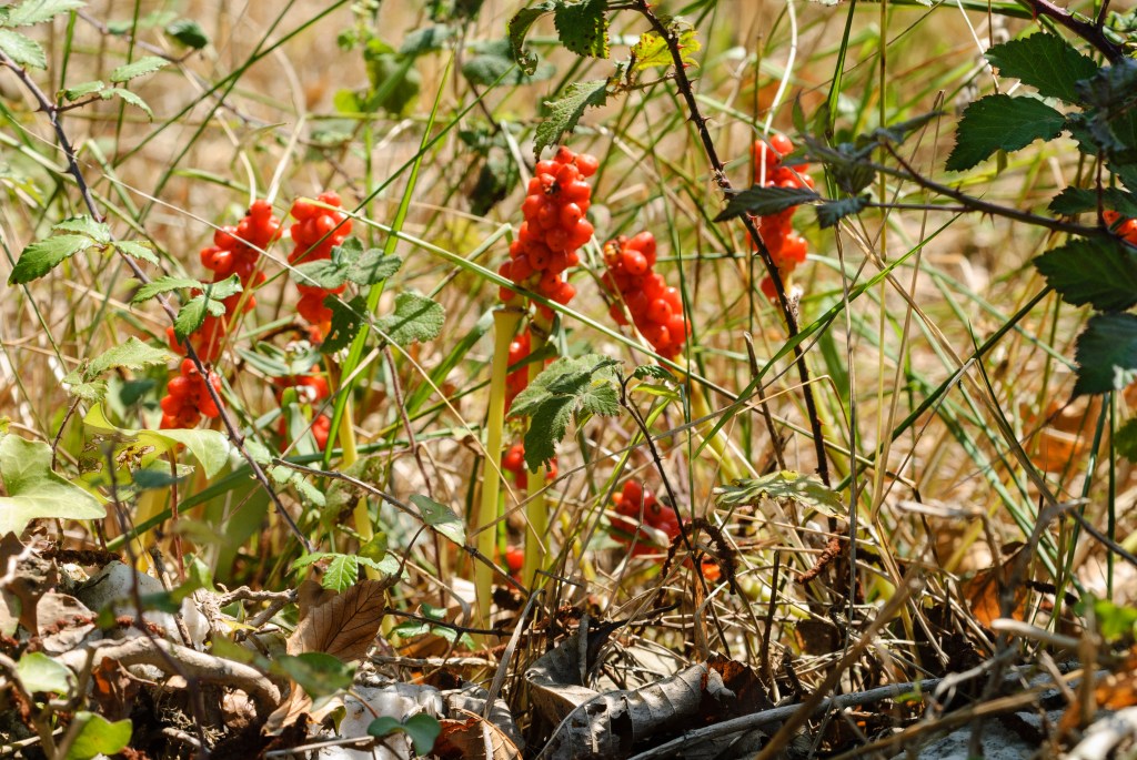 Oppassen met de groeikracht. De Italiaanse aronskelk kan zich snel uitbreiden via de knollen en de zaden en kunnen in kleinere tuinen in de schaduw de boel overnemen in het voorjaar. Niet iedereen vind dat mooi.
