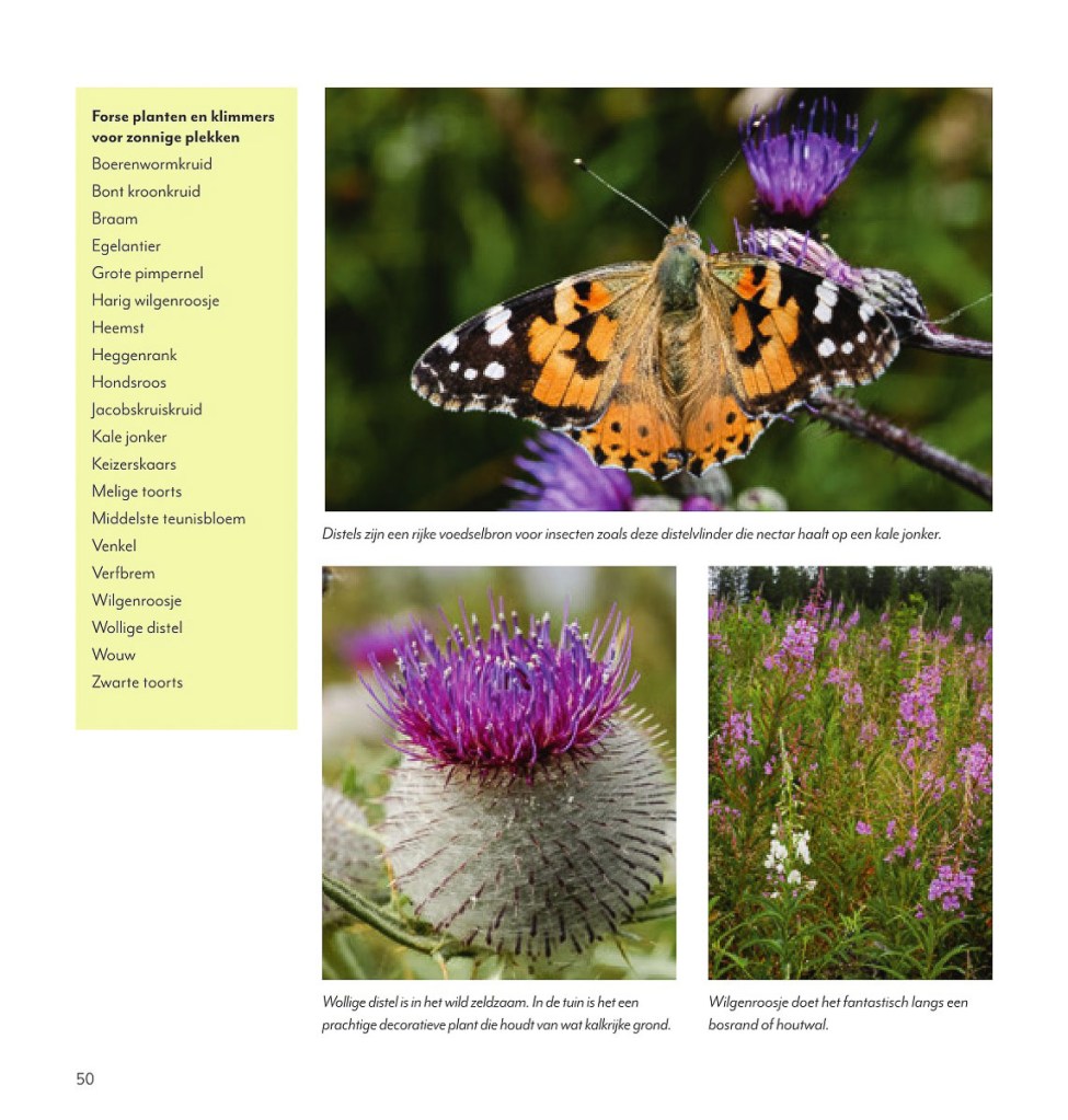 217 soorten planten en nog tientallen nieuwe soorten in het tweede boek, die in ons gebied voorkomen zijn heel aantrekkelijk om in de tuin te hebben. Sommige soorten bloeien uitbundig het hele jaar, anderen doen het een kortere tijd, sommige blijven het hele jaar groen, weer anderen verdwijnen een tijdje om op hun tijd weer enthousiast mee te doen.