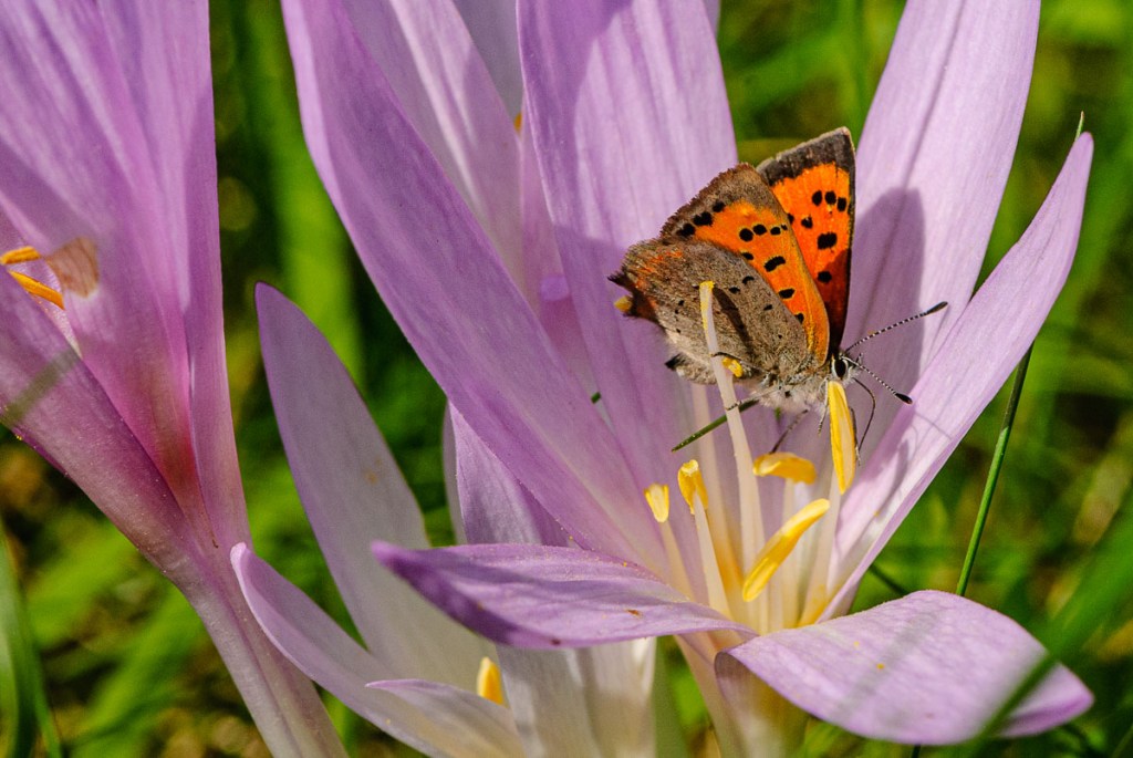 En dan de bloeitijd. De wilde herfsttijloos, inheems voor ons gebied en vooral op redelijk kalkrijke niet te droge graslanden, beekdalen, bij bronnetjesgebieden en in Nederland ook op vloeiweiden in het zuiden waar kalkrijk maaswater als bevloeiing van hooilanden wordt toegepast.