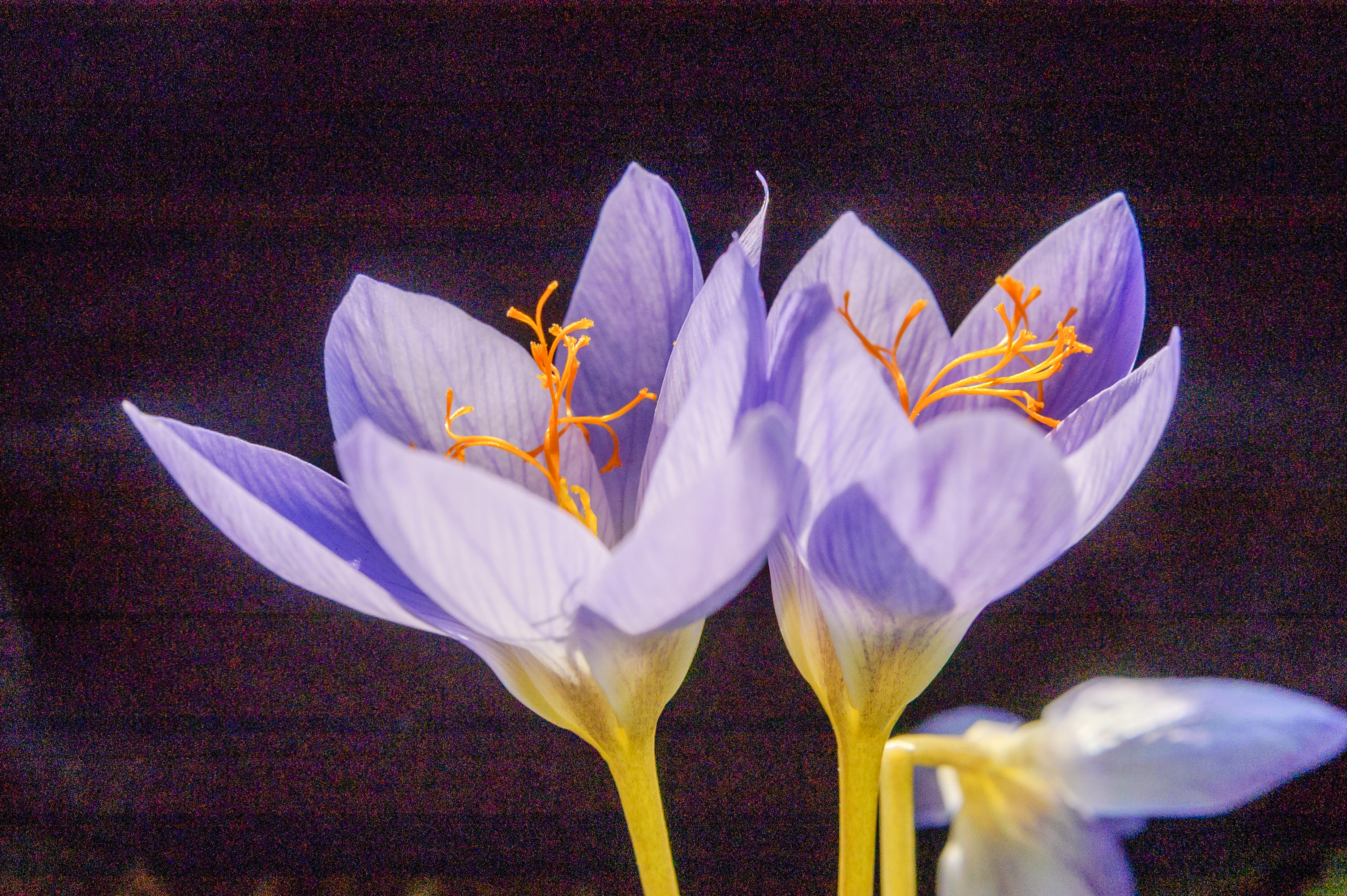 En dan is er ook nog een saffraankrokus. Inderdaad daarvan wordt saffraan geoogst. Van de diep oranjerode hangende stijlen. NIET van de gewoon oranje meeldraden! Van saffraankrokus is onduidelijk van wat de wilde vorm is en waar vandaan hij oorspronkelijk komt. Hij wordt al sinds mensenheugenis gekweekt vooral in het Middellandse Zee gebied en Klein Azië tot verder naar het oosten. Bij ons doet ie het meestal niet zo lang. Hooguit een paar jaar bloemen en dan is ie weer verdwenen. Plant hem op een warme, stenige en liefst wat kalkrijke grond. Dan doet het het langst.