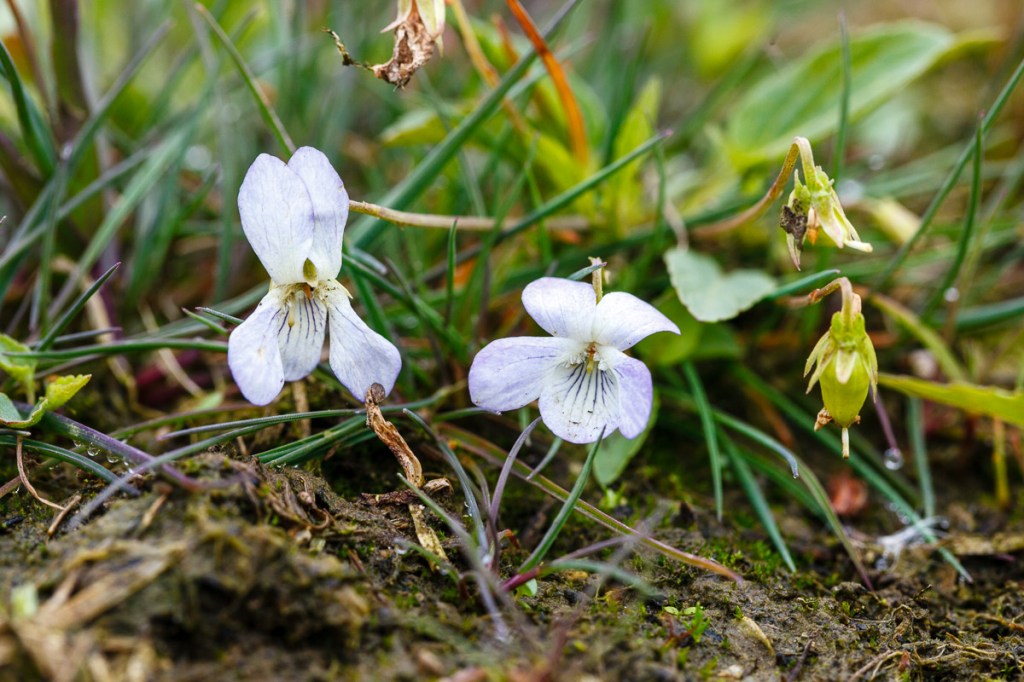 Op wat vochtiger plekken op heides en ook in de duinen vind je het hondsviooltje die behoorlijk lang kan doorbloeien in het voorjaar en de zomer. Het grappige is, en dat doen alle viooltjes, is dat ze wat betreft voortplanting met zaden op twee methodes gokken. Eerst bloeien ze met bloemen maar in de nazomer en herfst bloeien ze met cleistogame bloemen.