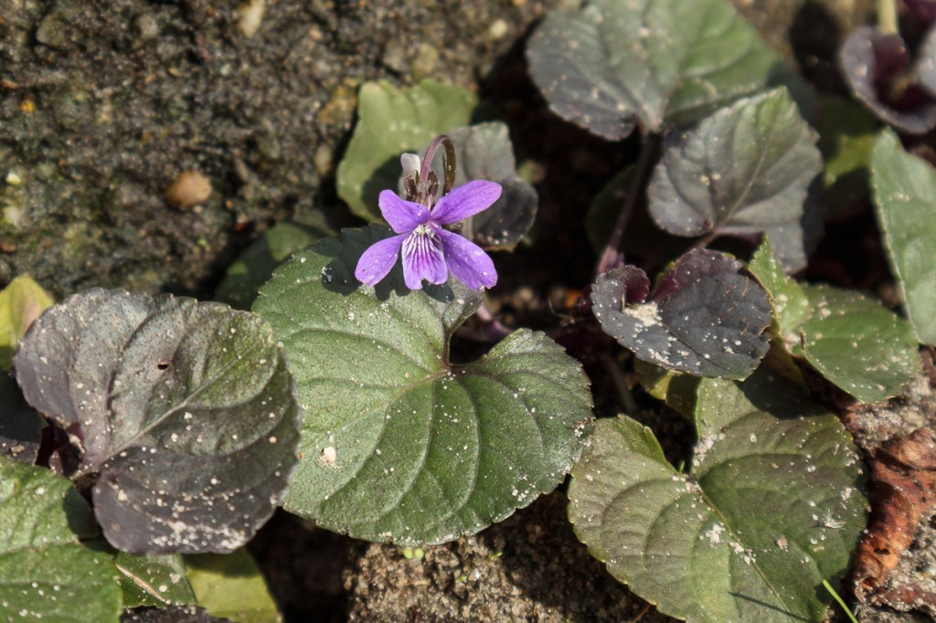 stedelijke omgeving. Vaak staan ze tussen stenen en tegels of tegen muren. Dat komt omdat de zaden een mierenbroodje hebben. Mieren die onder stenen hun nest maken nemen de zaden mee voor het “broodje” en verliezen onderweg het zaad. Tussen de stenen dus. Van het bleeksporig bosviooltje heb je ook een donkerbladige vorm die in de handel foutief “labradorviooltje” genoemd wordt.